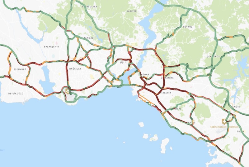 Okmeydanı TEM Otoyolu bağlantı yolu, Nurtepe Viyadük, Hasdal, Seyrantepe, Fatih Sultan Mehmet Köprüsü ile Büyükdere Caddesi, Levent TEM bağlantı yolu mevkilerinde çift yönlü trafik yoğunluğu yaşanıyor.