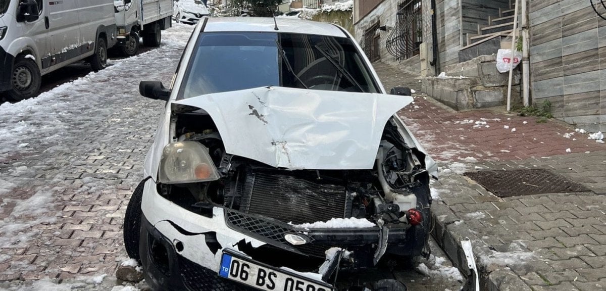 Yahya Kemal Mahallesi’ndeki bir diğer kazada ise, karlı yolda ilerlemeye çalışan araç, önündeki otomobile çarparak kazaya neden oldu.