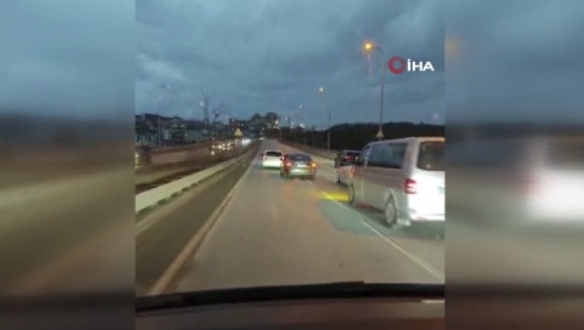 Silah sesleriyle birlikte panik yaşayan sürücüler duruma tepki gösterirken, konvoydaki diğer araçların da zikzak yaparak ilerlediği, trafiği tehlikeye düşürdüğü görüldü.