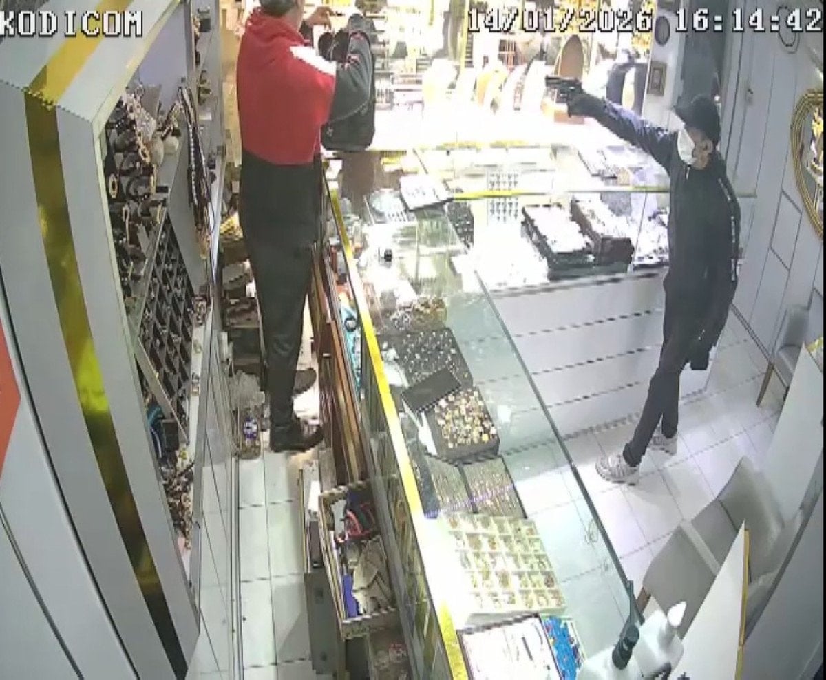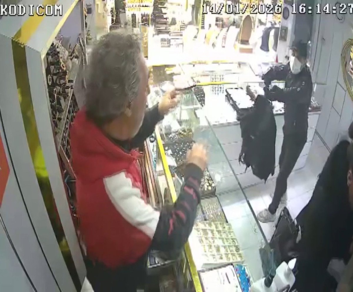 İstanbul Bahçelievler Kocasinan Mahallesi’nde 15 Ocak saat 19.00 sıralarında meydana gelen olayda yüzündeki cerrahi maskeyle bir kuyumcuya selam vererek giren şüpheli, kasada bulunan kişiden vitrindeki altınları çantaya doldurmasını istedi.