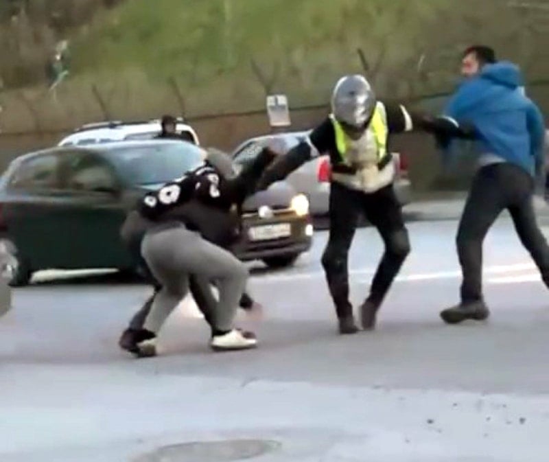 Tartışma kısa sürede büyüyerek tekme ve yumruklu kavgaya dönüştü.