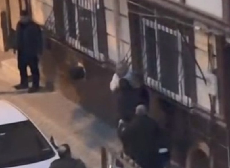 Birden fazla kişinin tek bir kişiye saldırdığını gören Esma Ç., o anları cep telefonuyla kaydetti.