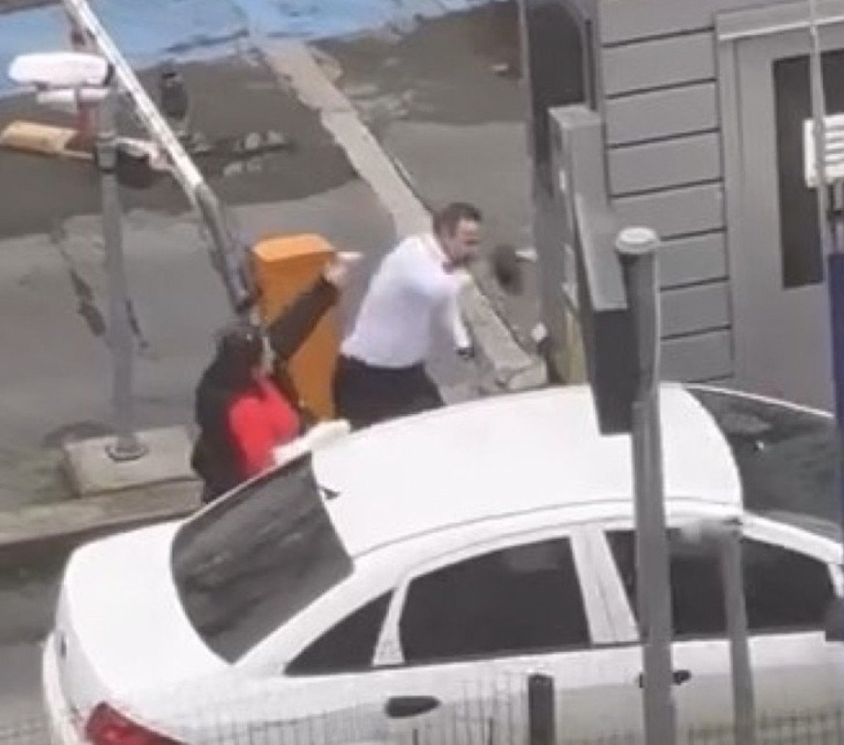 Tartışma, otomobil sürücüsünün bariyere çarparak otoparka girmesiyle sona erdi.