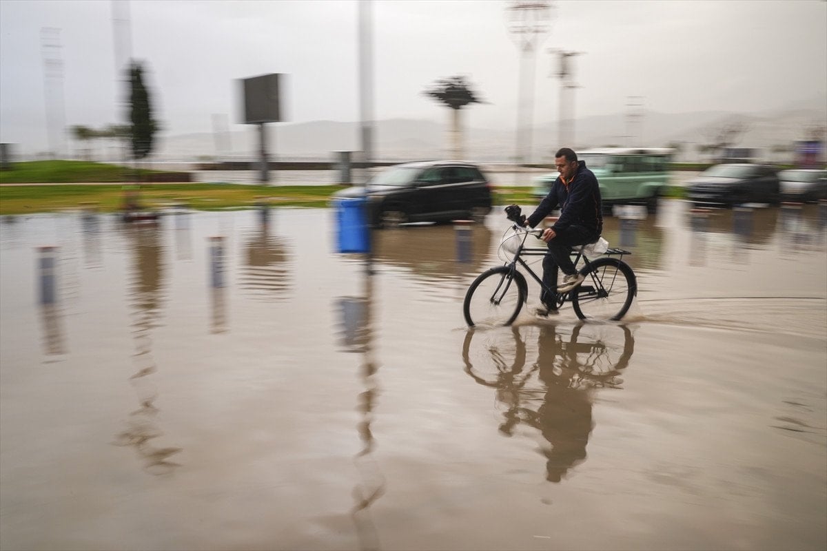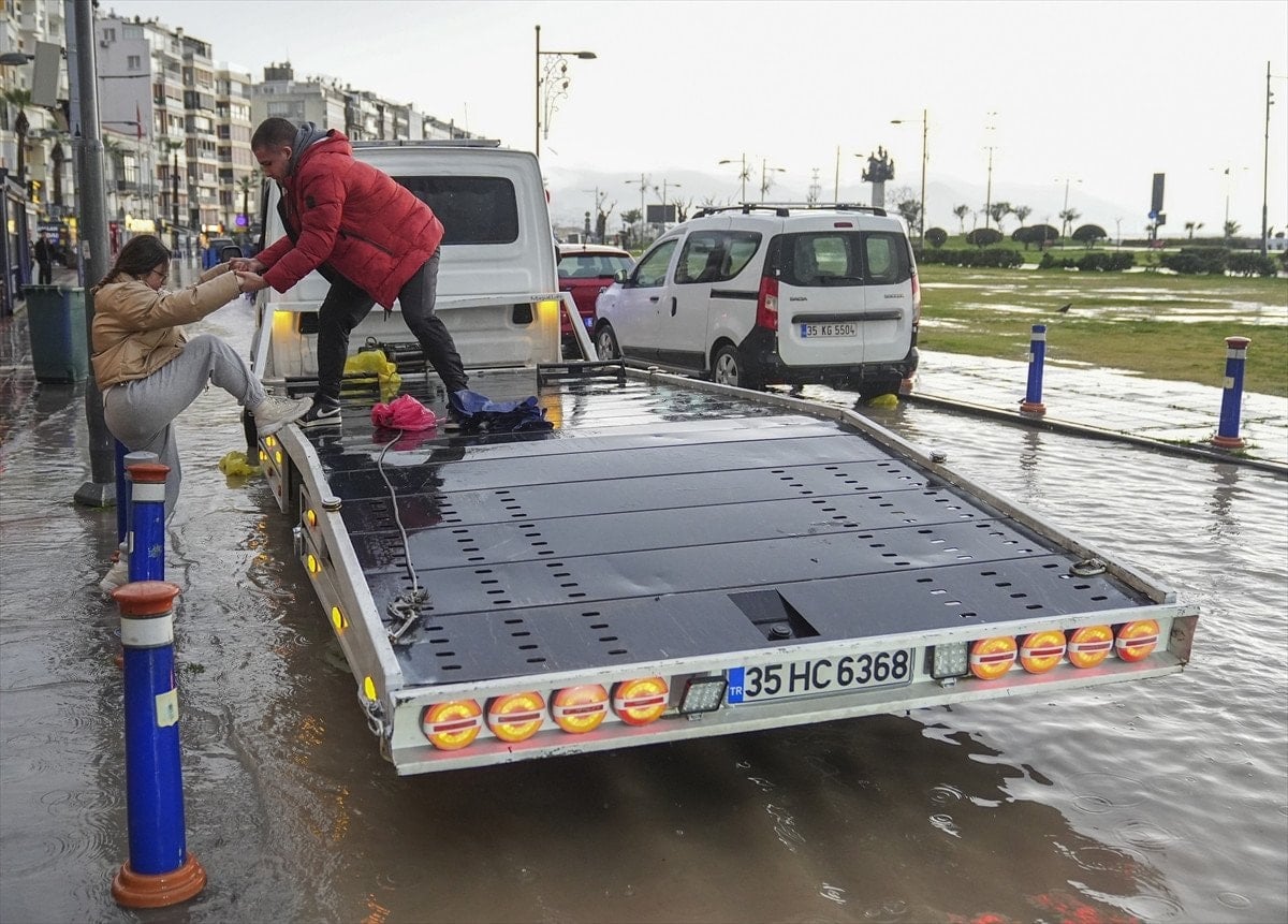 İzmir’de etkili olan sağanak, yaşamı olumsuz etkiledi.