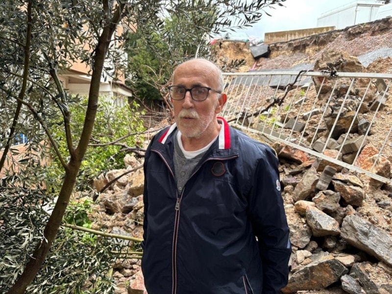 Duvardan kopan kayalar Öner Apartmanı’nın bahçesinde durmaya devam ederken, vatandaşlar yetkililerden çözüm beklediklerini söyledi.