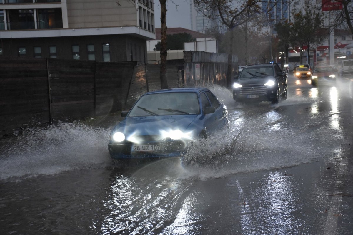 Yollarda su birikintileri oluşurken, sürücüler trafikte zor anlar yaşadı.