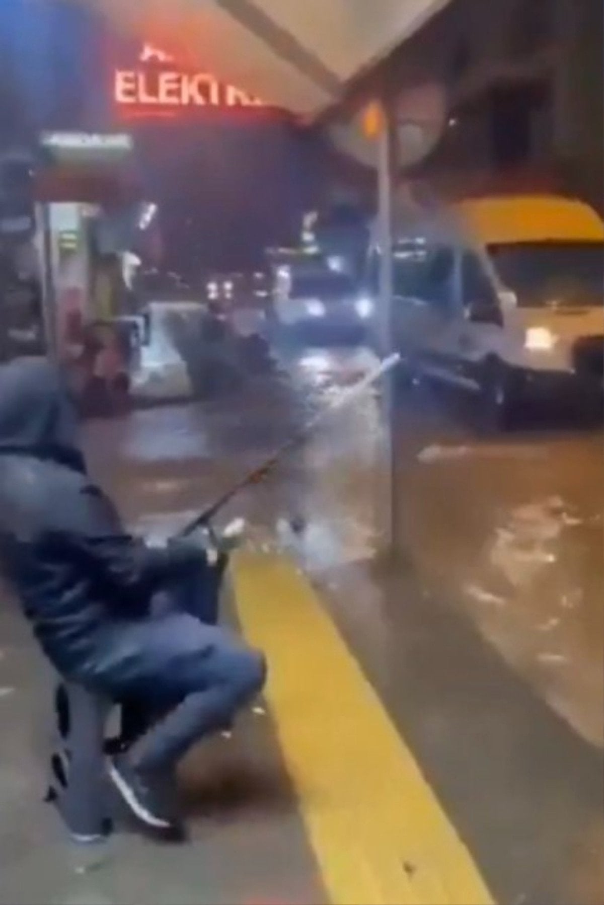 İzmir’de bir vatandaşın, göle dönen yolda oltayı alarak balık tuttuğu görüldü.
