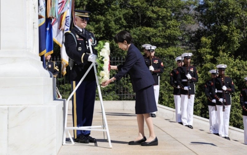 Sanae Takaichi, ABD gezisini Washington yakınlarındaki Arlington Ulusal Mezarlığı’nı ziyaret ederek Meçhul Asker Anıtı’na çiçek bıraktı.