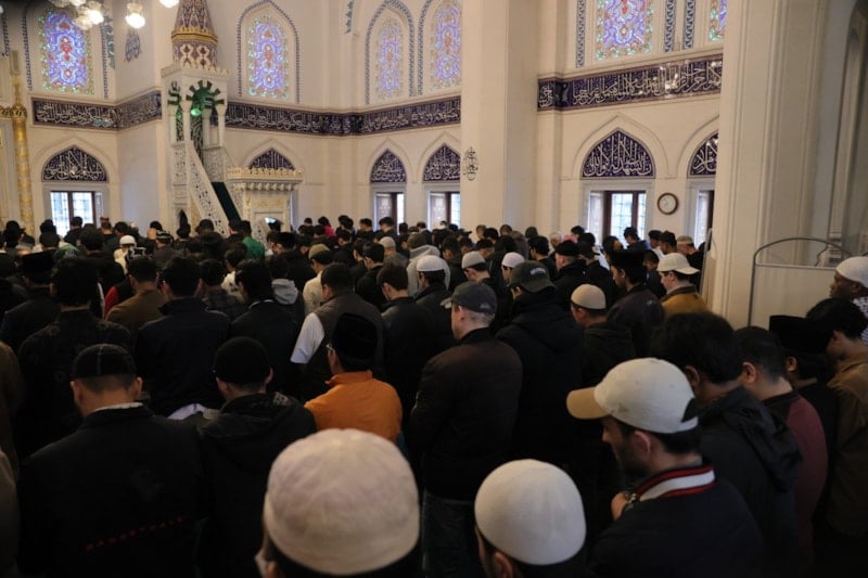 Ramazan Bayramı namazını kılmak için Tokyo Camii’ne akın eden binlerce kişi, cami çevresinde uzun kuyruklar oluşturdu.