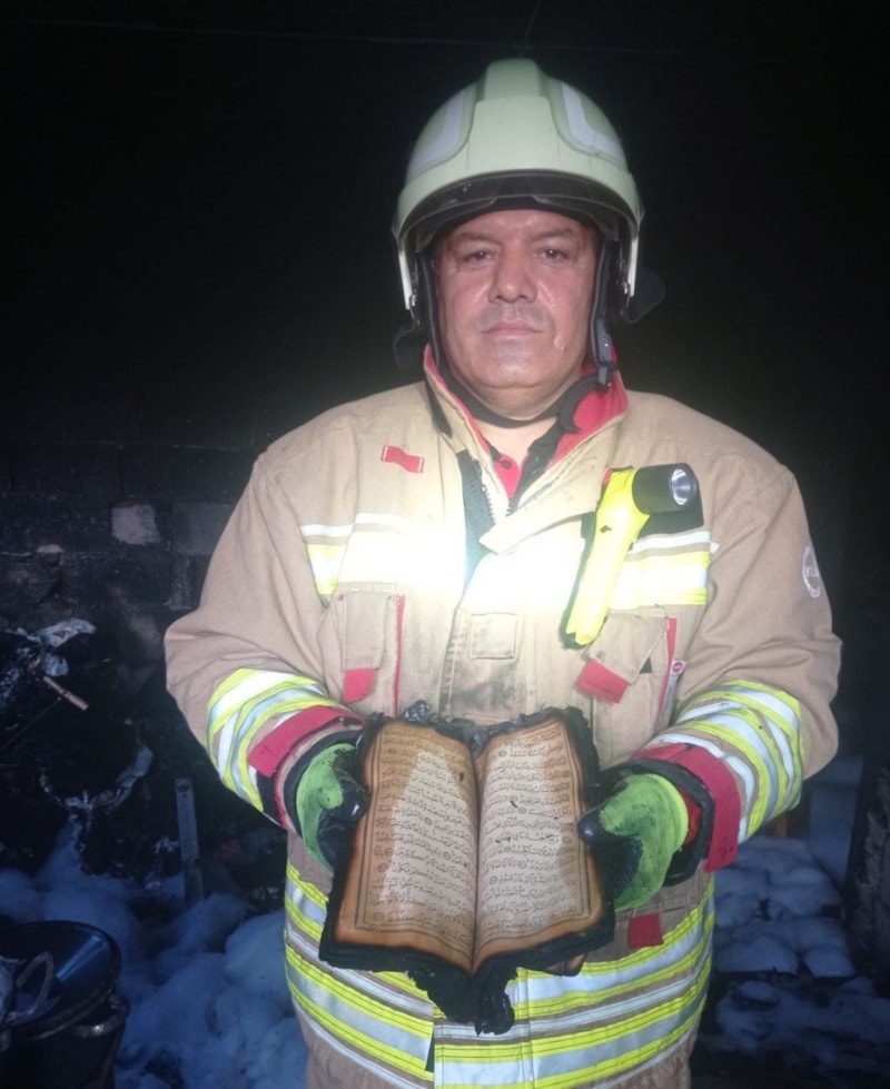 Kahramanmaraş’ta itfaiye erleri alevlerin arasından Kur’an-ı Kerim’i kurtardı