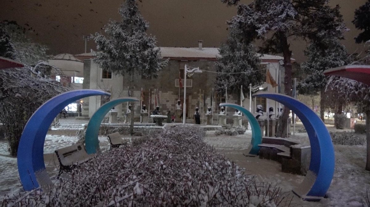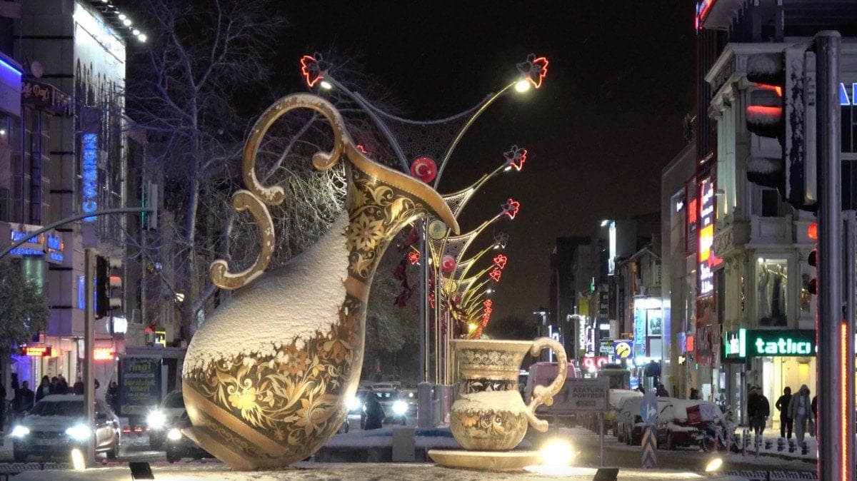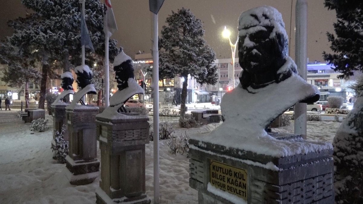 Kentte akşam saatlerinde etkili olan kar yağışı sonrası şehir merkezi beyaza büründü.