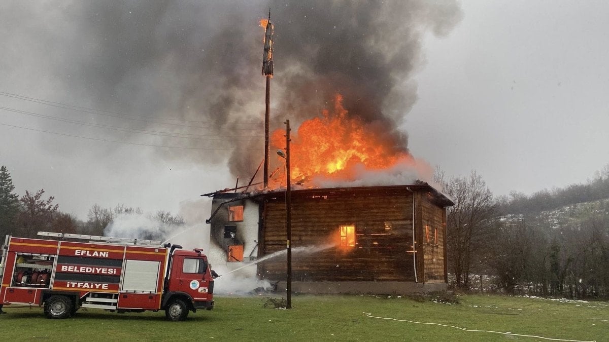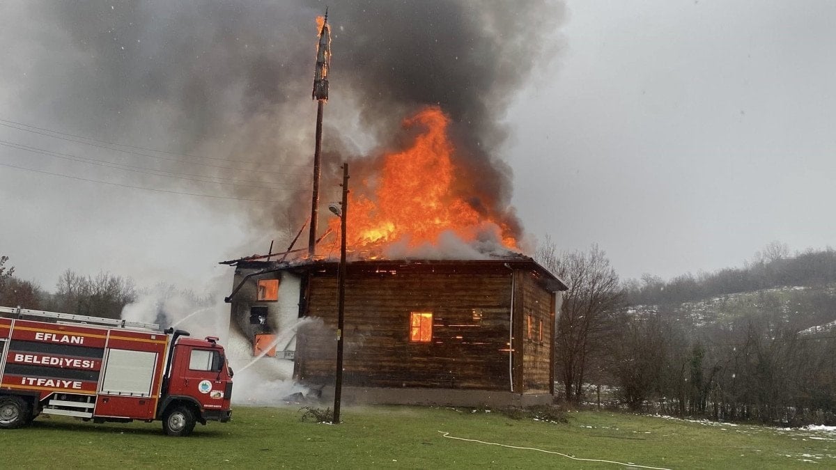 Karabük’te 450 yıllık ahşap cami cuma namazı sırasında alevlere teslim oldu