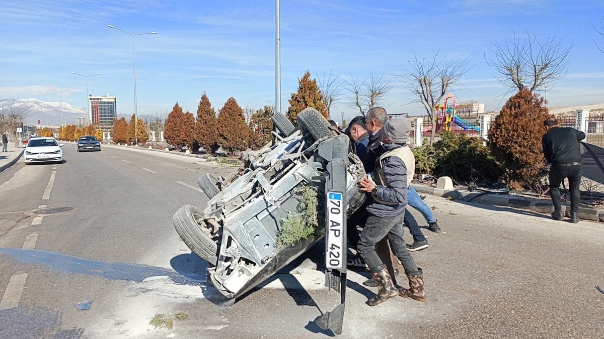 Karaman’da direksiyon başında telefon kullandı, kaza yaptı