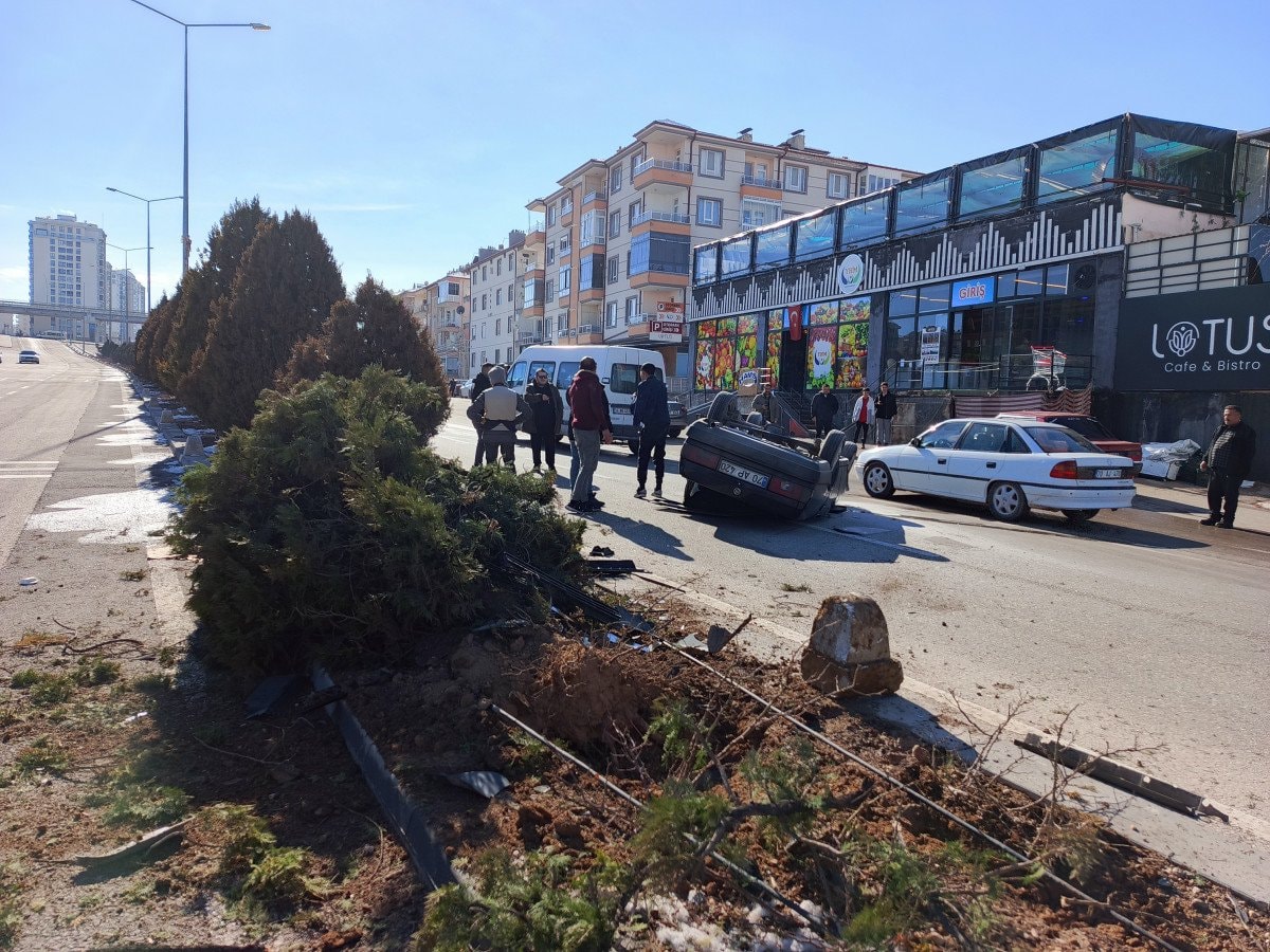 Bu sırada kontrolün kaybolduğu otomobil, refüje çarpıp ağaçları devirdikten sonra takla atarak ters döndü.