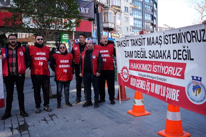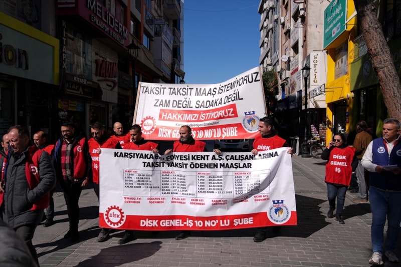 İzmir’in Karşıyaka Belediyesi iştiraki Kent AŞ’de çalışan yaklaşık 540 işçi, maaşlarını düzenli alamadıkları ve görev yerlerinin değiştirilmek istendiği iddiasıyla gösteri yürüyüşü gerçekleştirdi.