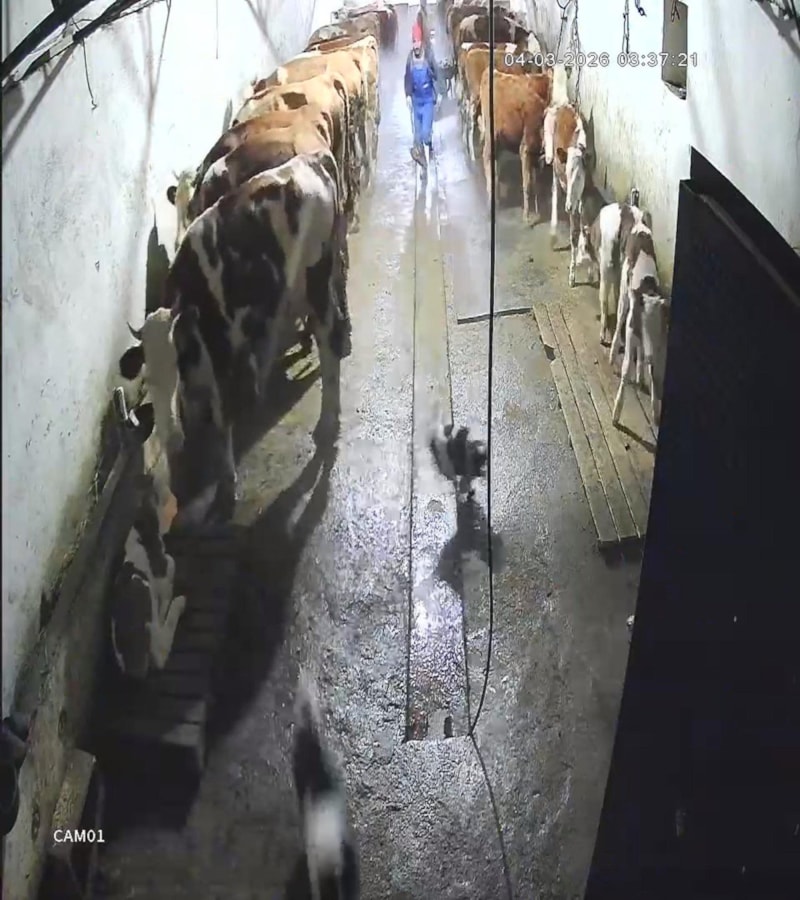 Uzgur, eline kürek alıp, kurtları kovalamaya başladı. Kurtlar bahçe dışına çıkarken; Uzgur’un kürekle kurtları kovaladığı anlar, evin bahçesindeki güvenlik kamerasına yansıdı.