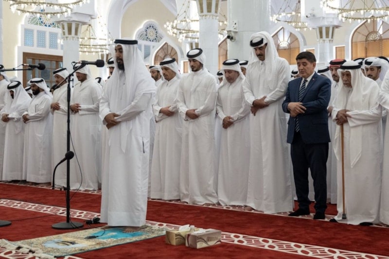 Katar Emiri Temim bin Hamed Al Sani, devlet yetkilileri ve Türkiye’nin Doha Büyükelçisiyle birlikte, görevleri sırasında Katar karasularında düşen askeri helikopterde şehit olan Katarlı ve Türk askeri personeller için Doha’daki İmam Muhammed bin Abdülvahhab Camii’nde kılınan cenaze namazına katıldı.