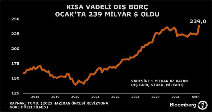 Kısa vadeli dış borçta artış Ocak ayında da devam etti.