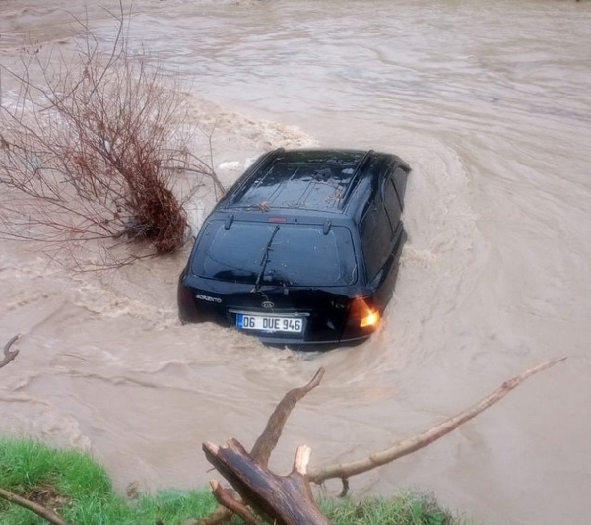 Yaşadıklarını cep telefonu kamerasıyla kaydeden Ali Güvenç, “Toprak kaymasının da etkisiyle aracımız sel sularına kapılarak sürüklendi. Dün saatlerce aradık ama bulamadık. Jandarmaya bilgi verdik, tutanak tutuldu. Aracı göremediğimiz için kayıp başvurusunda da bulunduk. Bugün sabah yeniden aramaya başladık ve öğle saatlerinde otomobilimizi bulduk” dedi.