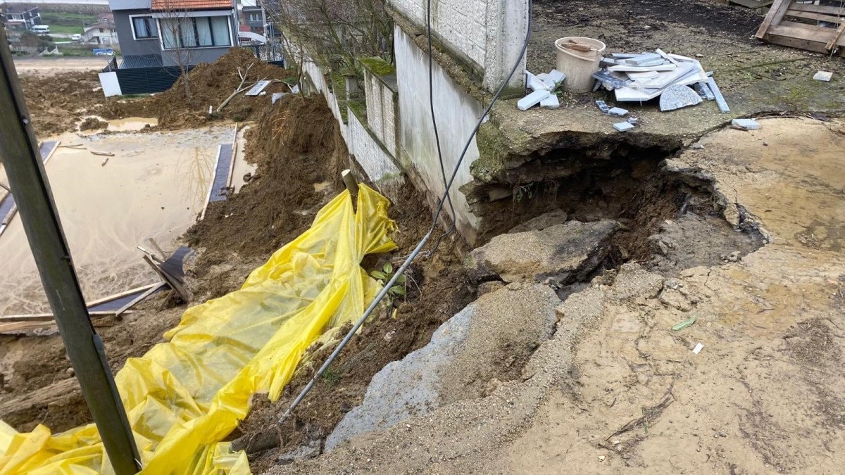 Kayma nedeniyle yolun inşaat sahasına bakan kısmı, koparak aşağı doğru çöktü. Çökme sırasında şantiyede bulunan ahşap kalıplar ve çeşitli malzemeler de çukura sürüklendi.