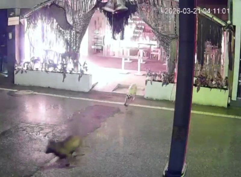 Kafenin ön bölümünden çıkan iki köpek de koşarak uzaklaştı.