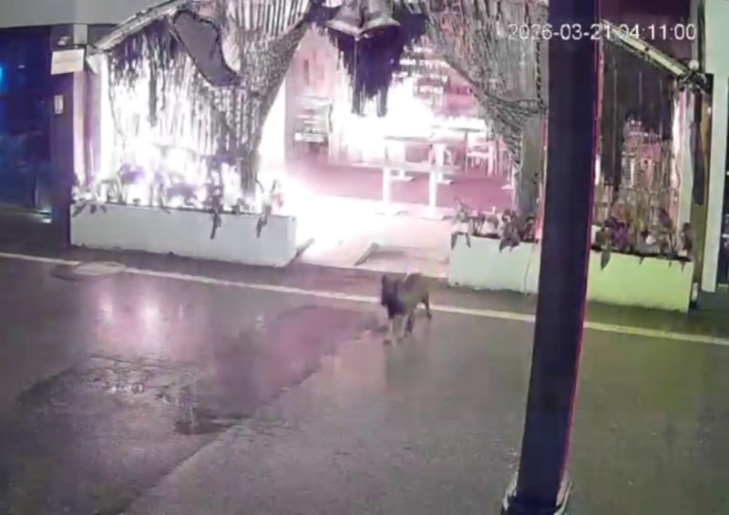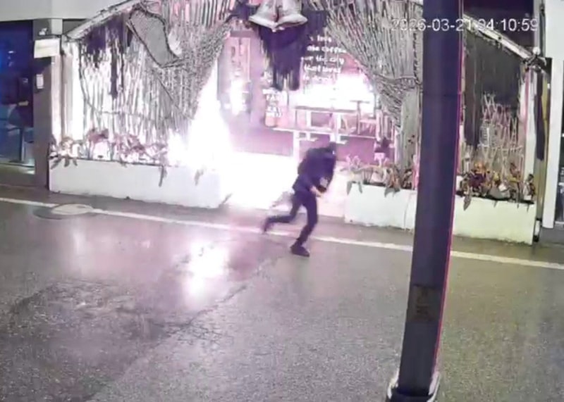 Şüpheli daha sonra hızla uzaklaşırken, alevler kafenin bir kısmını sardı.