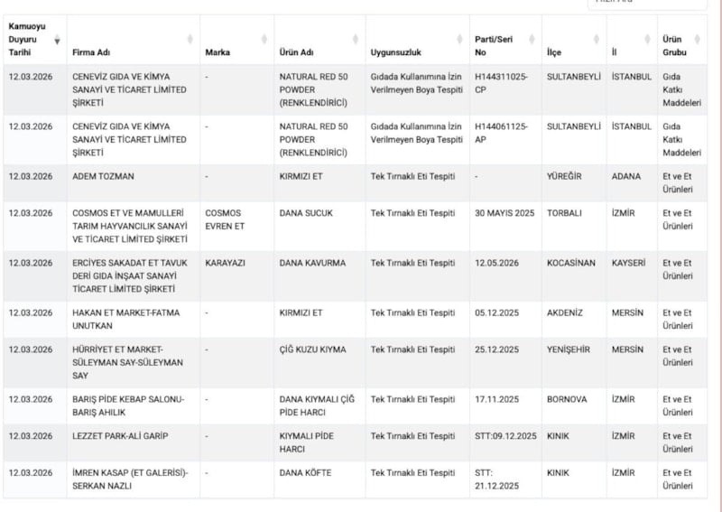 Bazı kırmızı etlerde tek tırnaklı (örneğin keçi/at/eşek) eti tespiti yapıldı, bu durum ürünün beyanıyla uyuşmayan bir içerik olduğundan hile sayıldı.