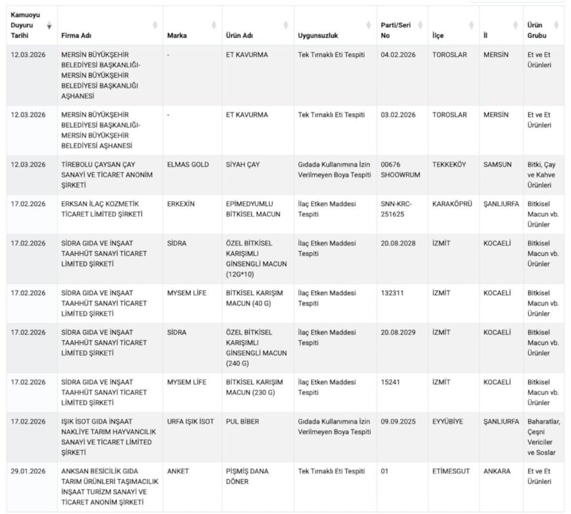 Tarım ve Orman Bakanlığı’nın Sağlığı Tehlikeye Düşürecek Gıdalar listesine 19 yeni ürün girdi.