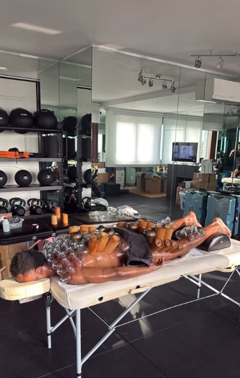 Vücuduna uygulanan hacamat tedavisi sırasında kaydedilen görüntülerde Openda’nın sırtında çok sayıda kupa bulunduğu görüldü.