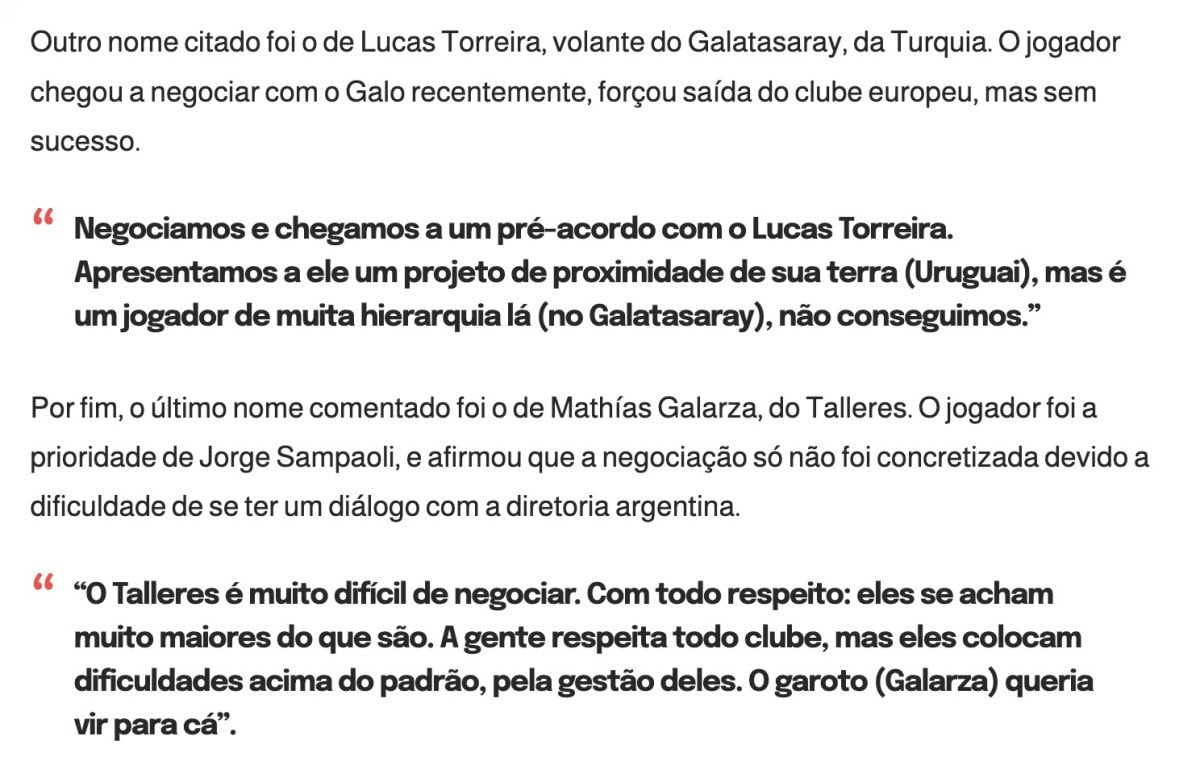 Torreira’ya ülkesine daha yakın olacak bir proje sunduklarını da sözlerine ekleyen Atletico Mineiro’da Spor Direktörü Bracks, Uruguaylı yıldızın Galatasaray’daki önemine vurgu yaptı.