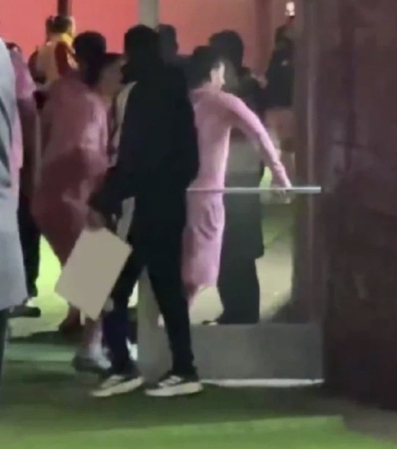 Messi, Luis Suarez’in kendisini durdurmaya çalışmasına rağmen hakem odasına girdi.