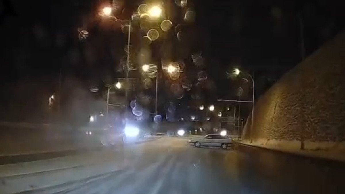 Yaşananlar caddede ilerleyen başka bir aracın kamerasınca görüntülendi.