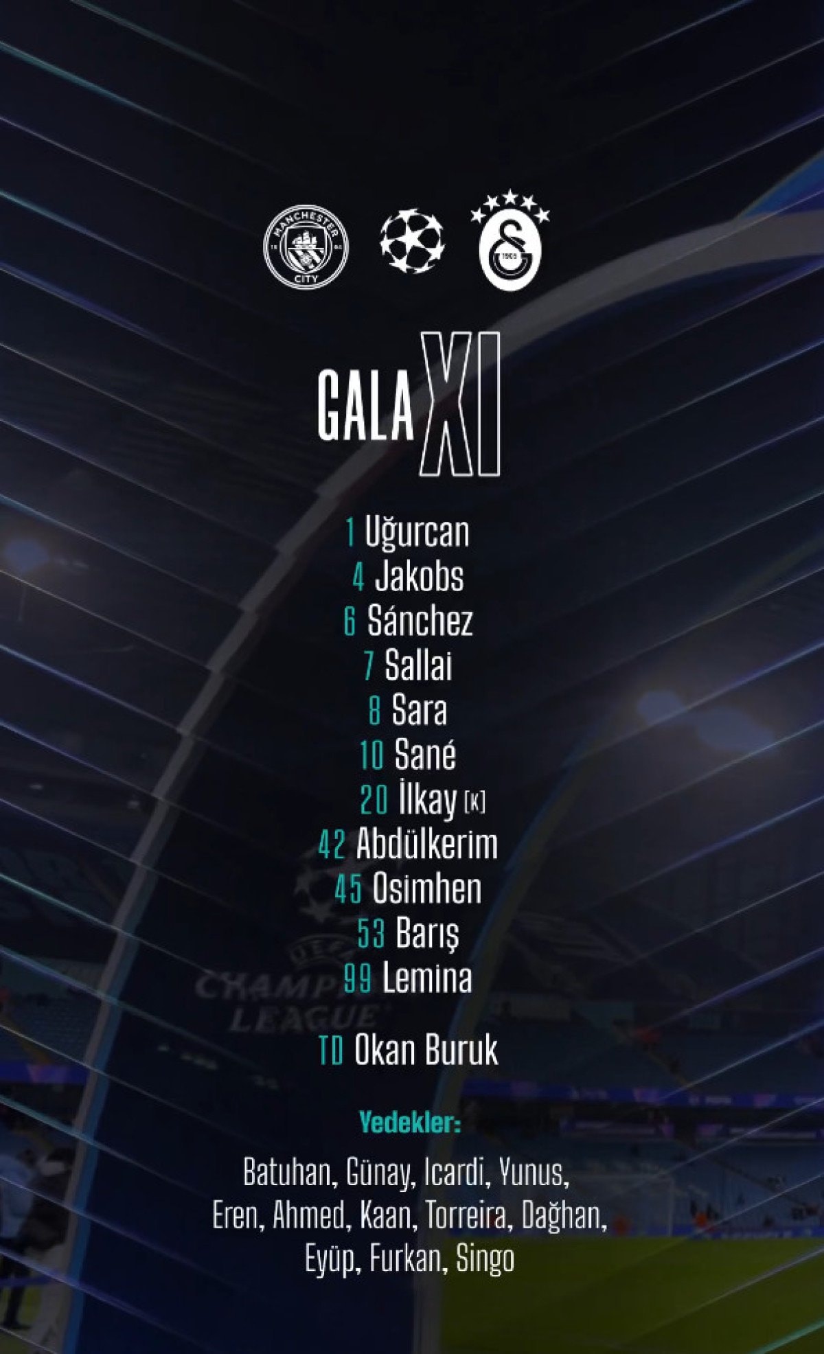 Galatasaray, UEFA Şampiyonlar Ligi’nin 8. haftasında deplasmanda İngiltere temsilcisi Manchester City ile karşılaşacak.