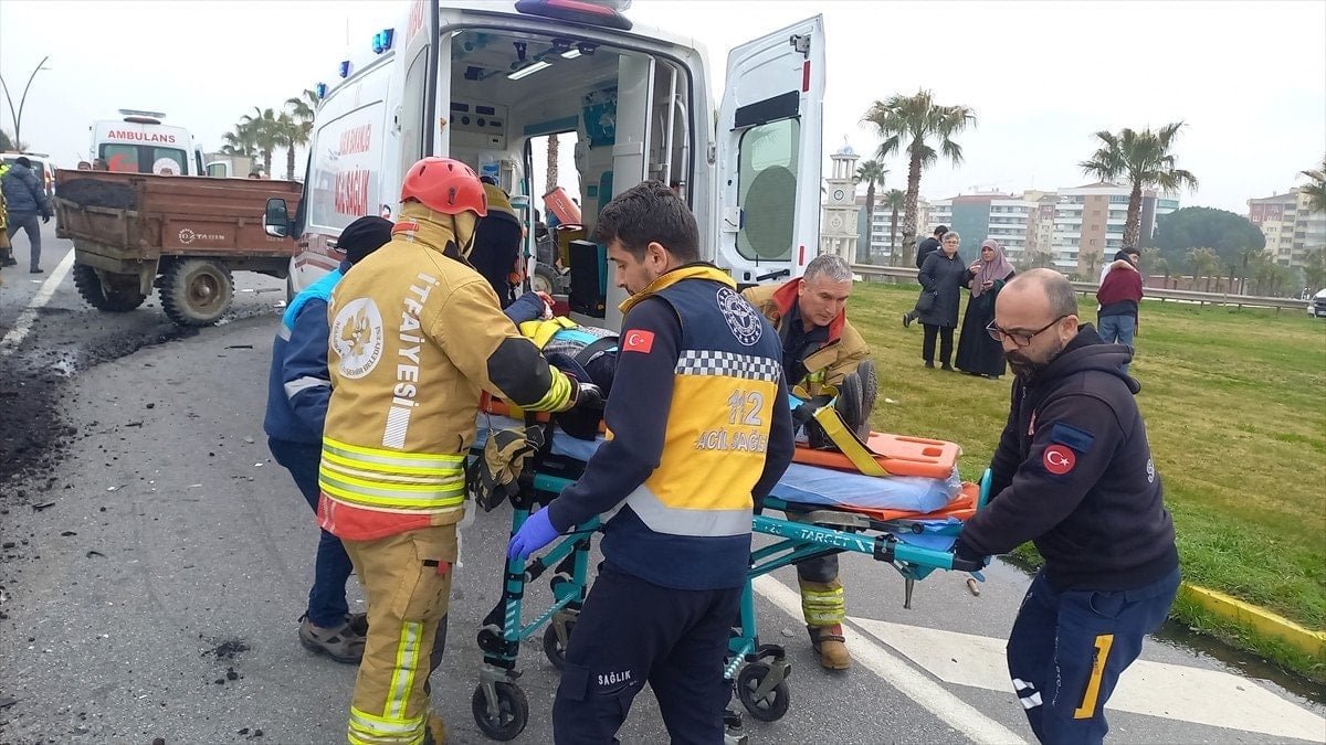 Manisa’nın Yunusemre ilçesi Muradiye Kavşağı mevkiinde seyir halindeki 16 AFP 130 plakalı otomobil, önünde ilerleyen 45 ET 318 plakalı traktörün römorkuna arkadan çarptı.