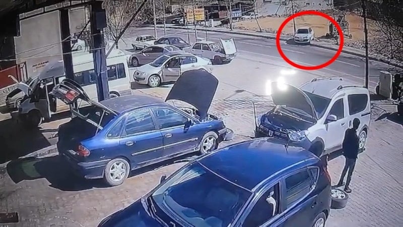 Mardin’in Mazıdağı ilçe merkezinde bulunan bir oto tamirci dükkanının önüne tamir amacıyla park edilen otomobil, iddiaya göre sürücüsünün el frenini çekmemesi nedeniyle bir süre sonra kendiliğinden hareket etti.