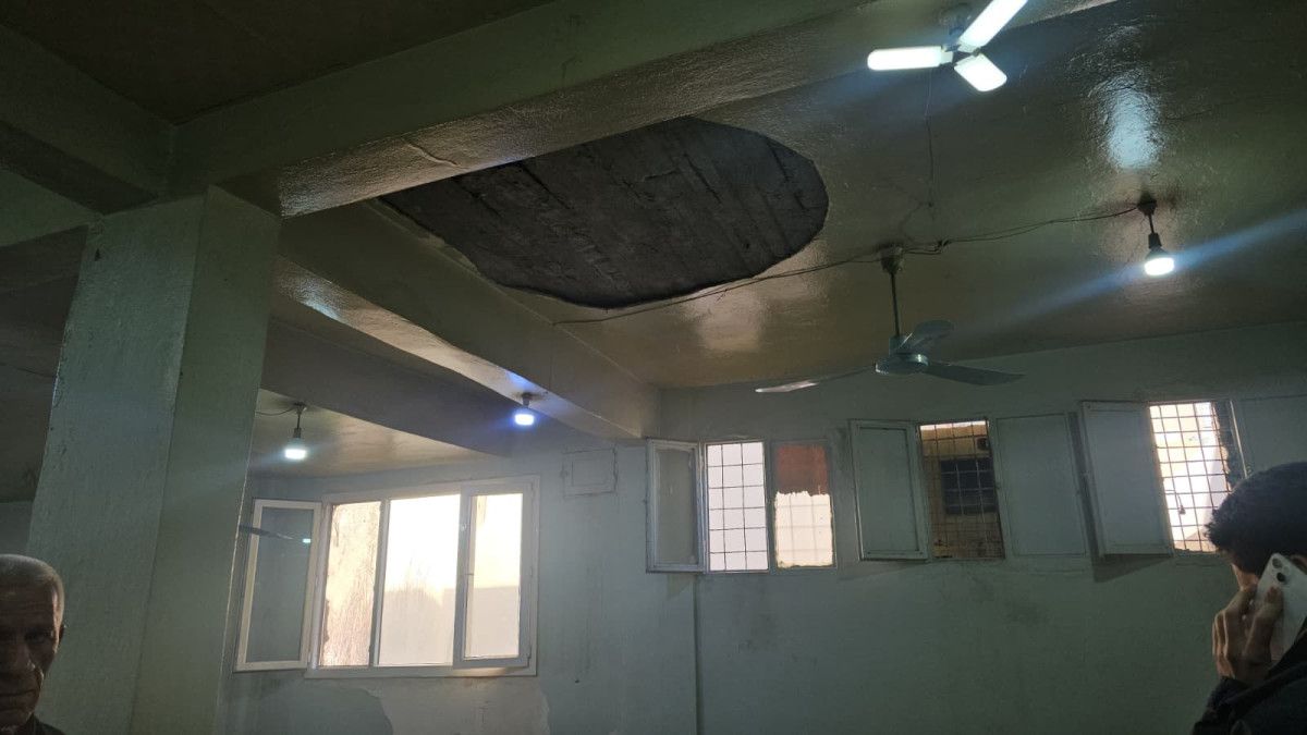 Mardin’in Nusaybin ilçesinde bulunan ve eski yapı olduğu belirtilen kıraathanenin tavanındaki sıva parçaları, içeride masada oturan müşterilerin üzerine düştü.