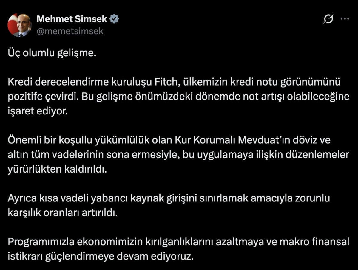 “Üç olumlu gelişme” notunu düşen Şimşek açıklamasında şunları kaydetti: