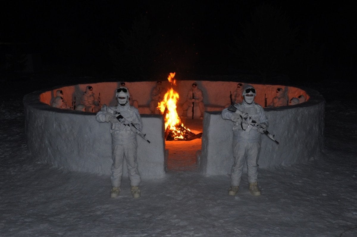 Mehmetçik eğitimde: Beyaz kamuflajla barınma ve çığ kursu