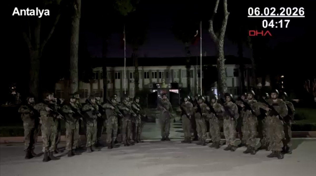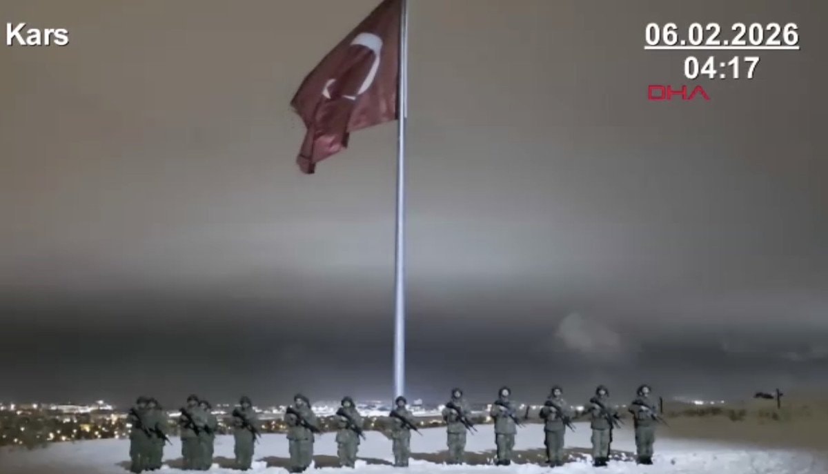 Paylaşımda, görev başındaki Mehmetçik’in, depremin yaşandığı saat olan 04.17’de Türk bayrağının altında saygı duruşunda bulunduğu görüntülere de yer verildi.