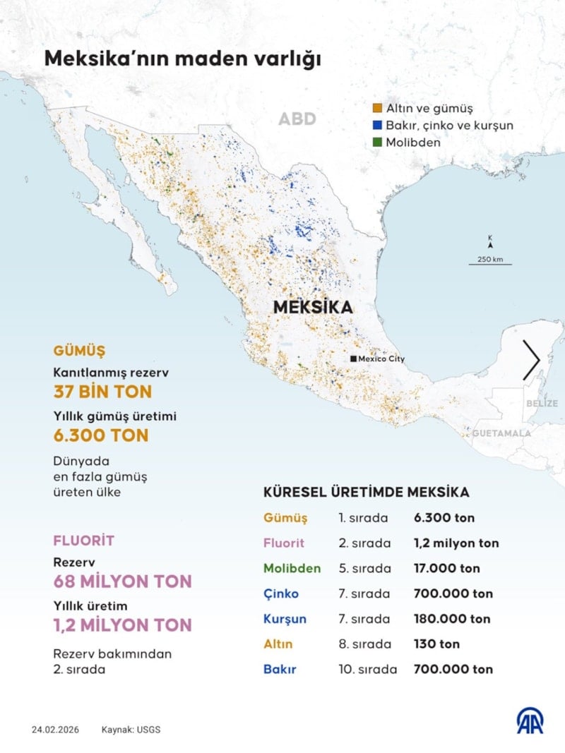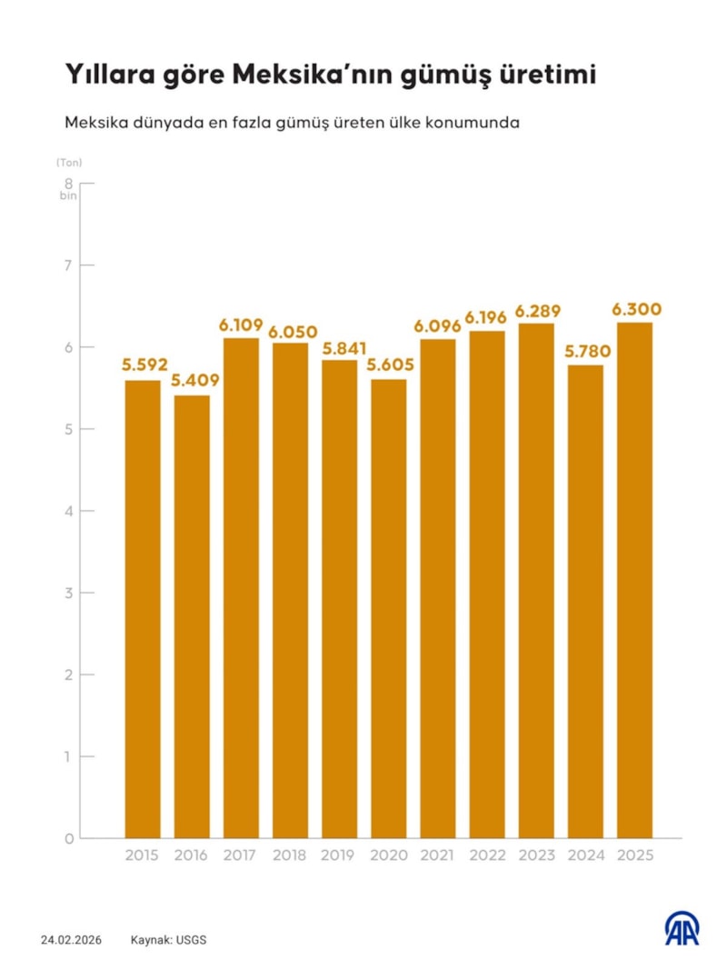 Meksika’nın kanıtlanmış gümüş rezervi 37 bin ton, yıllık gümüş üretimi ise 6 bin 300 ton olarak biliniyor.