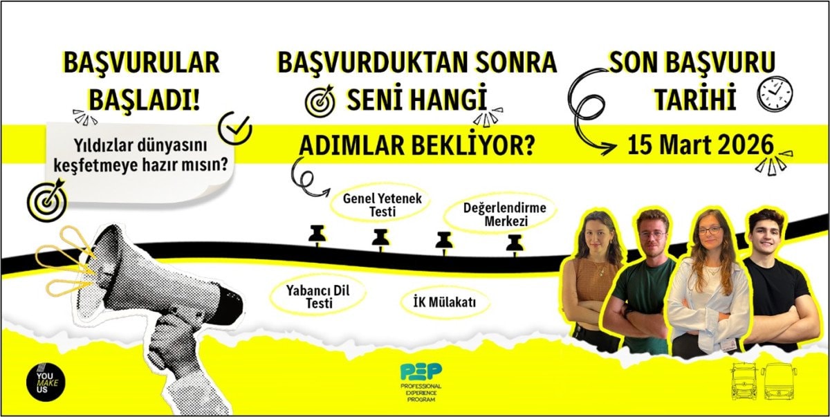 PEP takımına seçilen stajyerler, 12 ay süren program boyunca kendilerine verilen projelerle yeteneklerini ortaya koyma fırsatı buluyor. PEP Uzun Dönem Staj Programı’na başvurular, 15 Ocak 2026-15 Mart 2026 tarihleri arasında Mercedes-Benz Türk’ün resmi PEP başvuru adresi üzerinden yapılabiliyor.