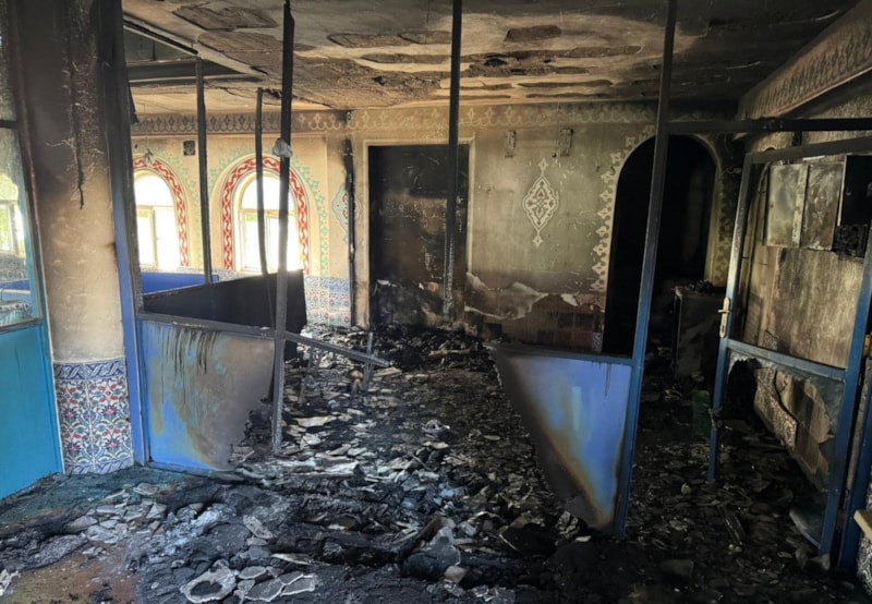 Yangın nedeniyle camide bulunan halıların bir kısmı ile imam odasında hasar oluşurken, caminin tamamının dumandan etkilendiği öğrenildi.