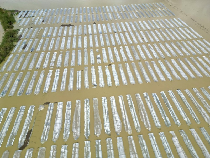 Sağanaktan etkilenen tarım arazileri drone ile görüntülendi.