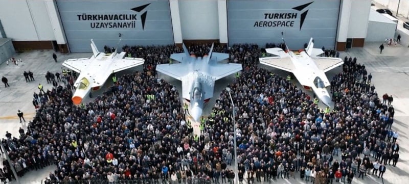 Klipte, milli muharip uçak KAAN’ın geliştirilen 3 prototipi yan yana yer aldı.