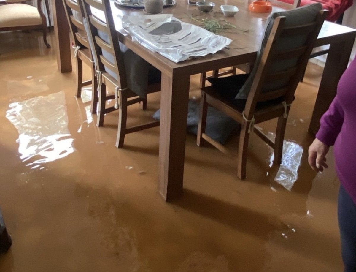 Belediye ekipleri tarafından evde su tahliye çalışması yapıldı.