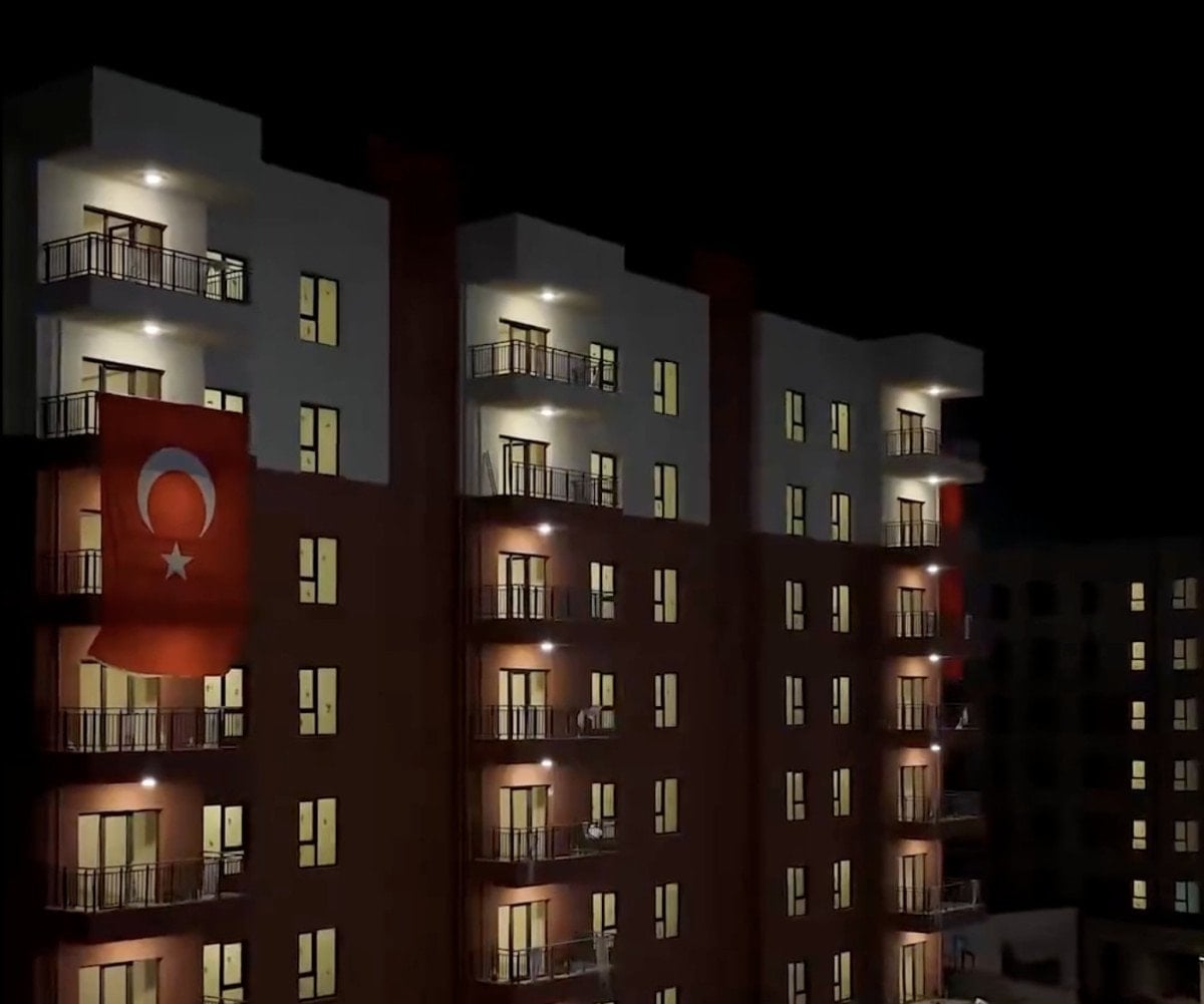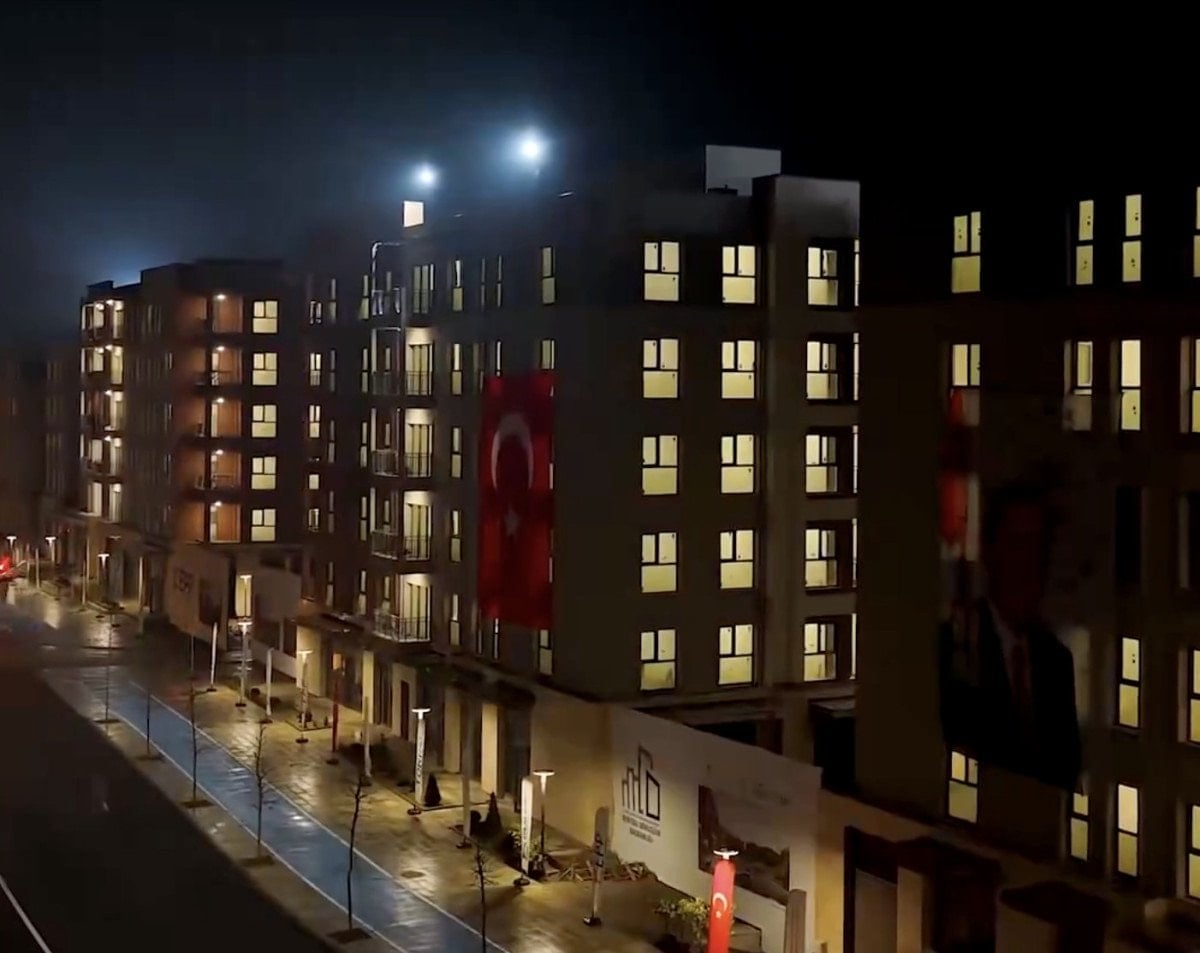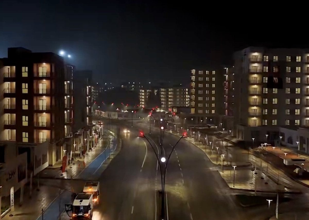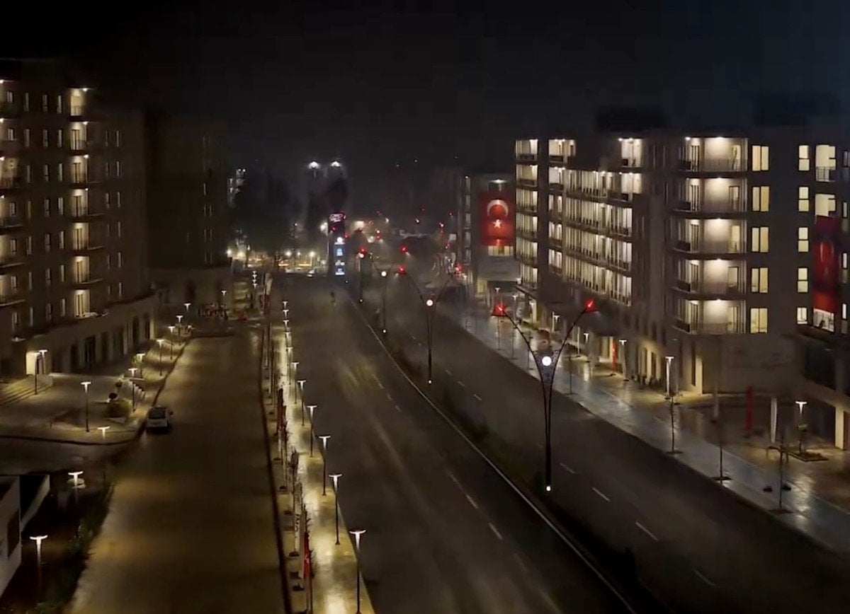 Görüntülerde, caddede inşa edilen konutların tamamlandığı görülürken ışıklandırma ile beraber kartpostallık görüntüler oluştu.