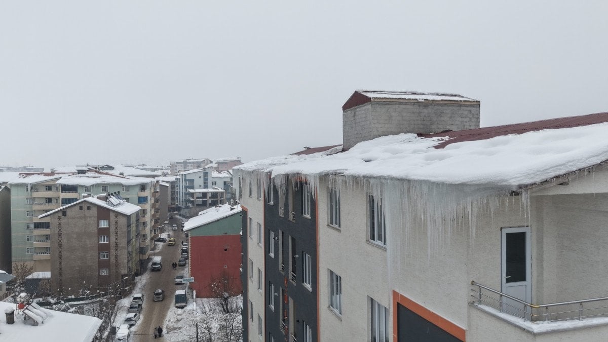 Muş’ta çatılarda oluşan dev buz sarkıtları korkuya neden oldu