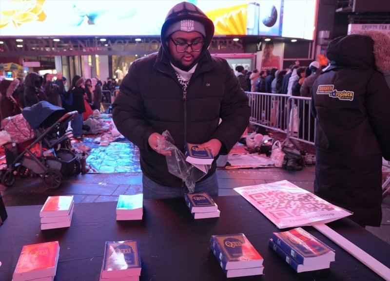 New York şehrinin en işlek yerlerinden biri olan Times Meydanı’ndaki Müslümanların iftar ve teravihi, çevrede bulunan New Yorkluların ve turistlerin yoğun ilgisini çekti.