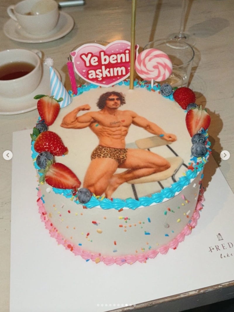 Nilperi Şahinkaya’nın sevgilisi Baturalp Bekar, Nilperi’nin 37. yaşına özel hazırlattığı pastanın üstüne leoparlı bir iç çamaşırı giyip kaslarını sergileyen pozunu koydurdu. Pastanın üstüne ise ‘Ye Beni Aşkım’ yazdırdı.