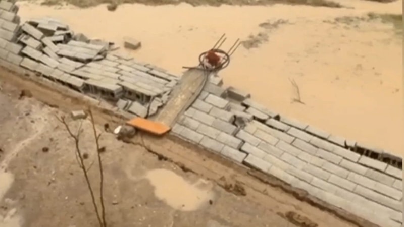 Yolbilen Mahallesi’nde de bir evin bahçe duvarı yıkıldı.